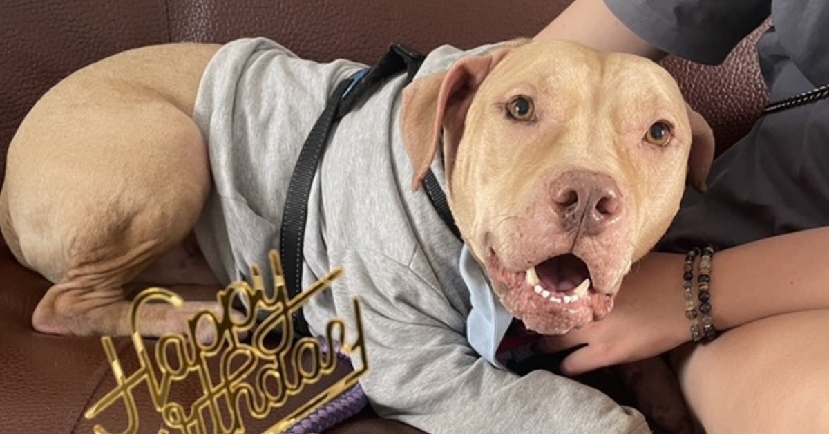 屏東比特犬「索爾」2021年咬死3歲男童一度面臨安樂死,3年前被認養移居台北展開新生活。(圖/中央社)