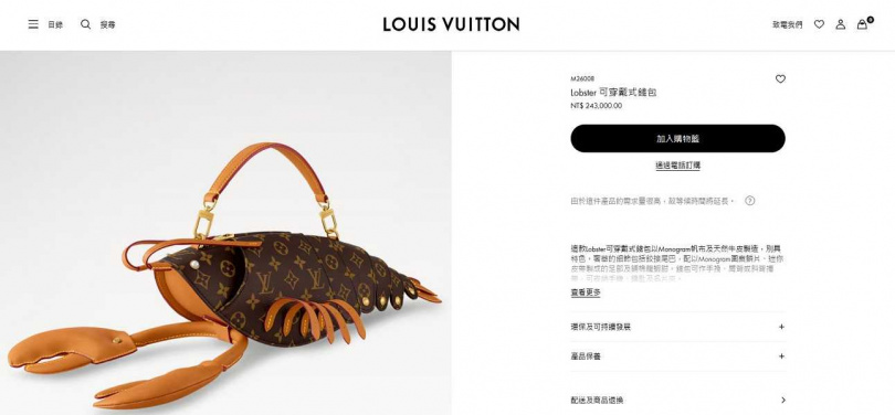 LV(路易威登)是法國奢侈品牌,以不斷推出新款設計、限量商品和聯名系列聞名,不過有時候也讓消費者看不懂。近日就推出一款龍蝦造型新品「LOBSTER」(龍蝦)手提包,外型十分獵奇,售價為55500元人民幣,掀起網友熱議。