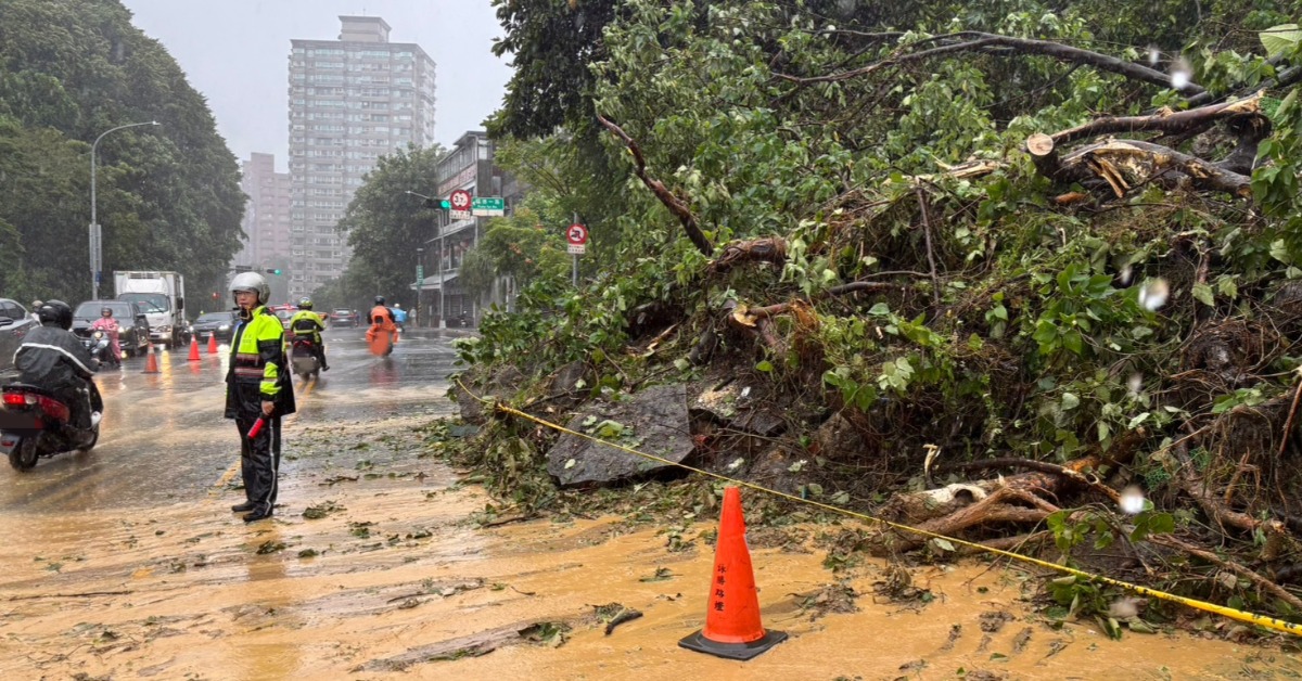 新北市汐止區康寧街及福德一路口於今日發生一起土石及路樹倒塌案件。(圖/東森新聞)