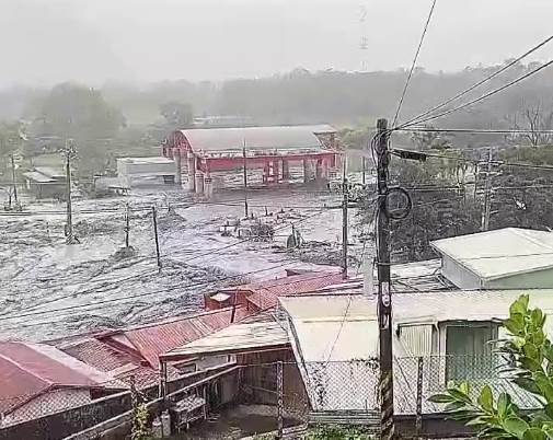 馬太鞍溪水持續上漲,位於明利村無明橋旁的村落遭到洪水吞續,許多平房幾乎滅頂。